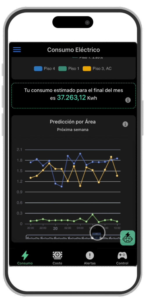 Utilizar Inteligencia Artificial para predecir su consumo, sus costos energéticos, y para detectar potenciales incumplimientos a sus metas.